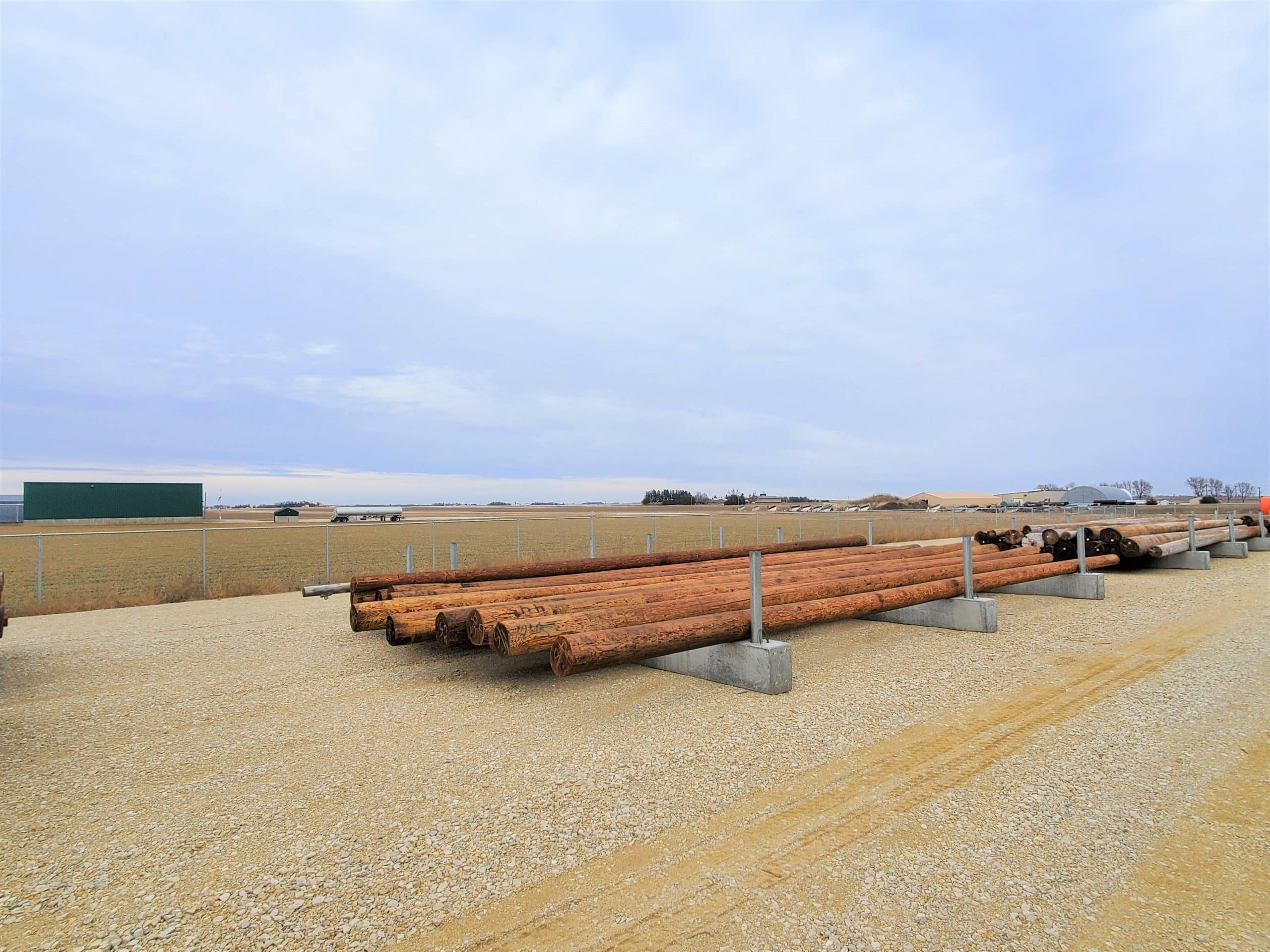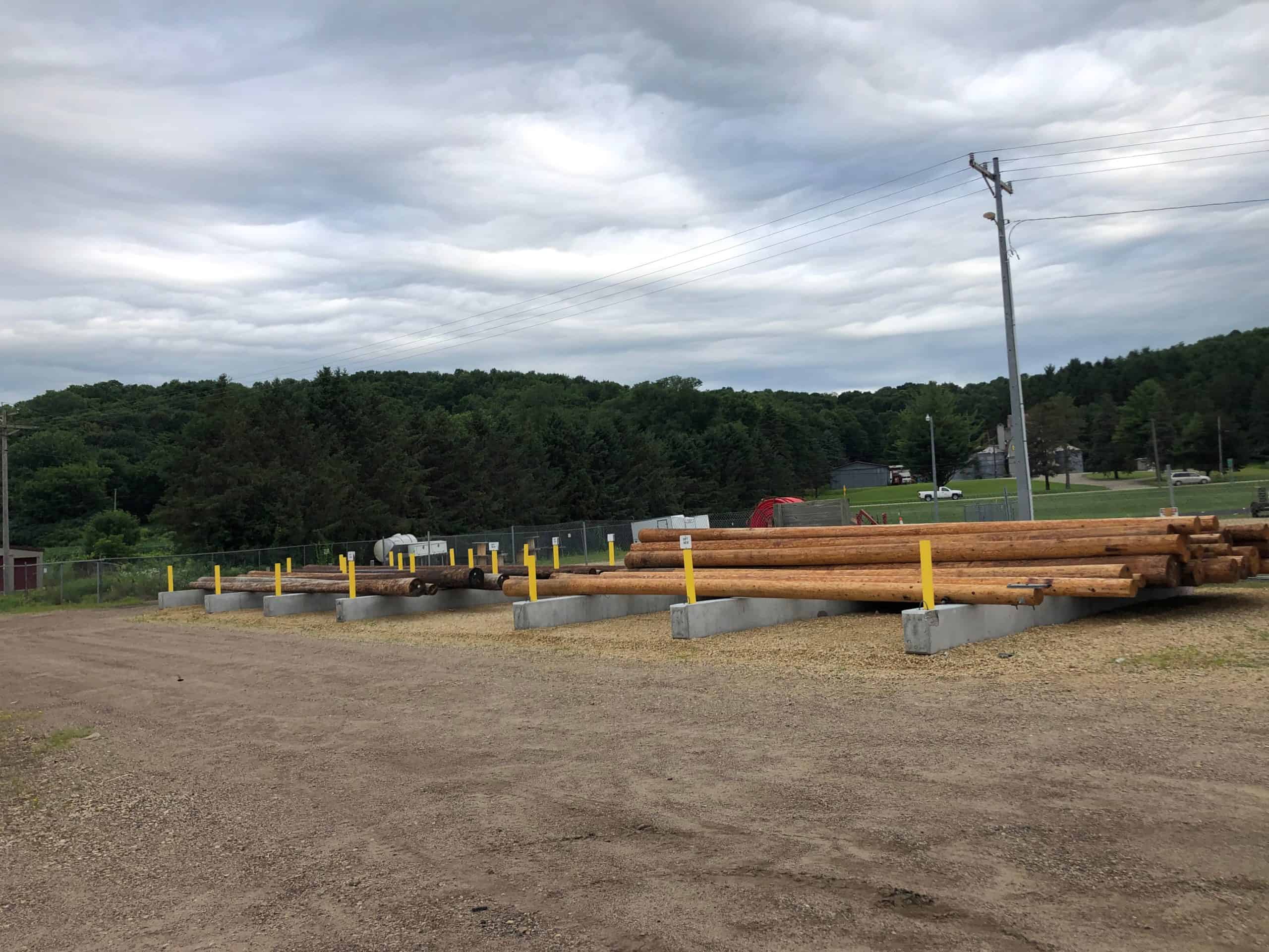 Prestressed concrete beams are fitted with 5 inch steel sleeves that house the casing pipe, which provide a durable and customizable racking system. Each beam is poured with cable-lift handles cast in to allow the beams to be moved with ease with the proper equipment. The concrete beams are also heavy enough to remain stable while loading and unloading the poles.